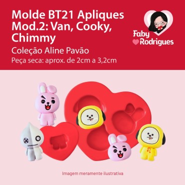 Molde de Silicone BT21 Apliques Mod2: Van, Cooky, Chimmy - Aline Pavão