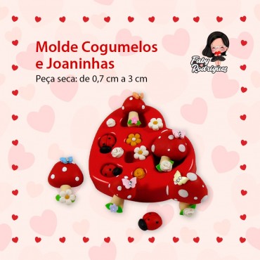 Molde de Silicone Cogumelos e Joaninhas - Faby Rodrigues
